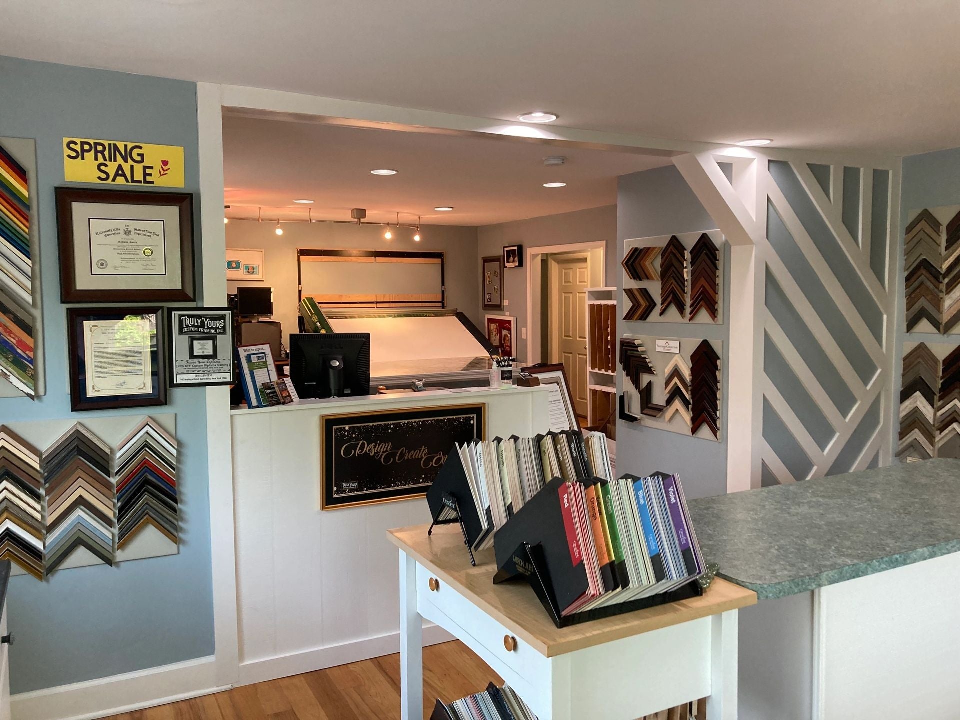 We have ample counter space where you may start exploring frame and mat options on your own. Â Someone will be available to guide you with any questions, give design suggestions, and provide price quotes.
